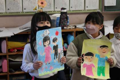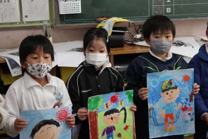 来年度、1年生になるこども園の子に向けて、ビデオ撮影をしました。その前に、うまくいくように、真剣に練習をしていました。