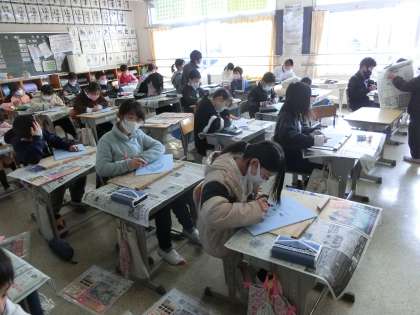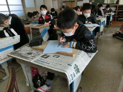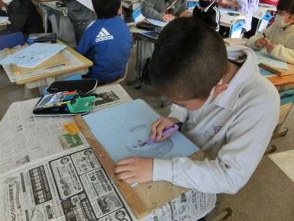 手の位置に気を付けながら、集中して彫っていました。どの向きに彫ると顔の様子が表現できるか考えて、正確に彫っていました。