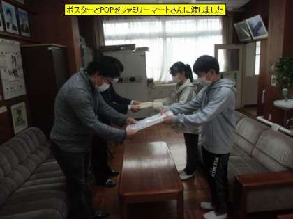 ポスターとPOPをファミリーマートさんに渡しました(6年生)