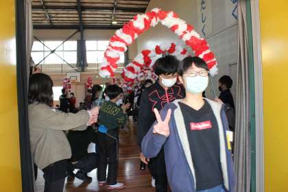 第1部が終わり、南校舎に向かいます。みんな笑顔いっぱいです。