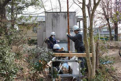 老朽化により壊れていたビオトープのポンプが修理されました。久しぶりに水車が回り、小川が流れています。寿恵野のシンボルが復活しました。