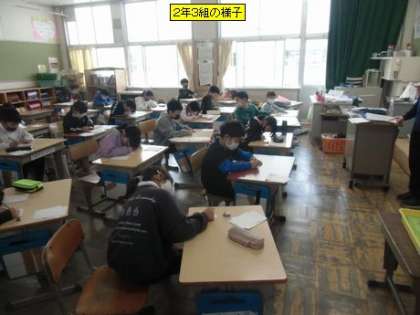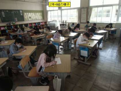 2年3組と4組の様子です。友達に手紙を書いたり、漢字テストに取り組んりしていました。