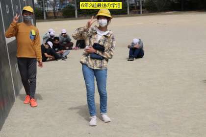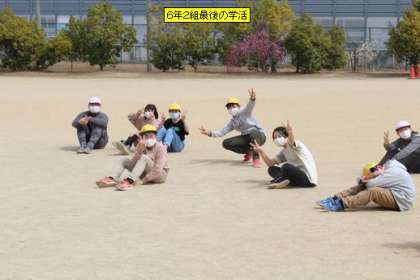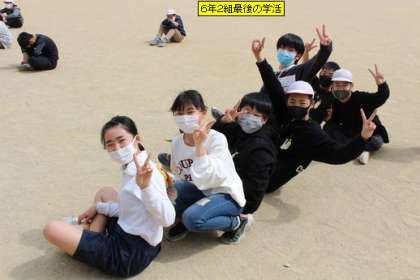 6年2組の皆さんが、運動場でクラスのみんなと楽しい時間をかみしめるように過ごしていました。
