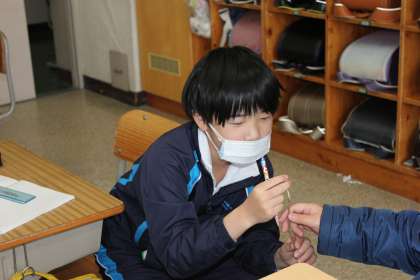 桜といちょうの枝を実際に見ながら、観察していました。たくさんのつぼみを見ながら、春を感じていました。