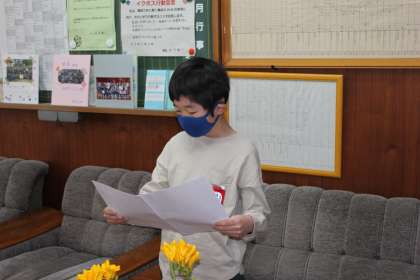 1・3・5年の代表児童が、今年1年頑張ったことや成長したことを発表しました。堂々と意見を伝えることができました。