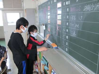 6年生では、早く準備を終え、係活動をしている子も見られました。