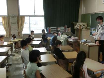 先生の話を真剣に聞いています。しっかりした姿勢、話す人に向けられた目線、素晴らしいと思います。