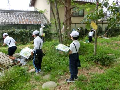 3年生から理科の学習が始まります。ビオトープやいきいきランドで、植物や動物を探していました。テントウムシ・カエル・ダンゴムシなど、いろいろな生き物が見つかったようです。