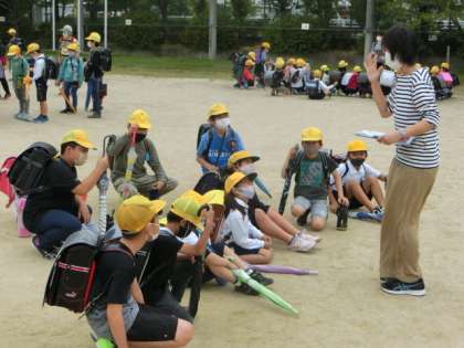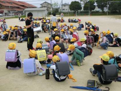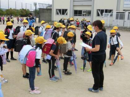今日は今年度初めてのミニ通学団会でした。それぞれの班の登下校の様子について確認しました。