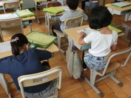 来週、2年生が1年生を連れて、学校案内をしてくれることになっています。今日はこれまで2週間にわたって行ってきた準備の仕上げをしていました。