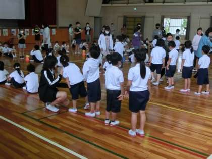 4時間目、体育館で、1年生の入学を祝う会が行われました。6年生の皆さんが、それぞれの役割をしっかり果たし、会を盛り上げました。