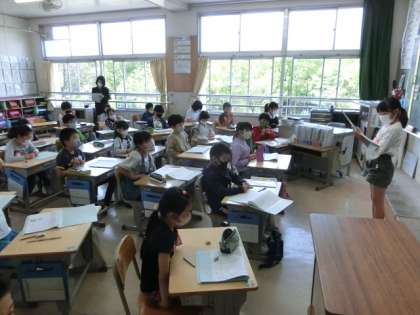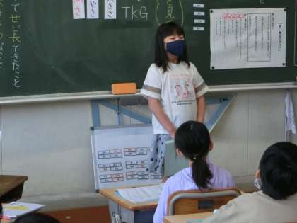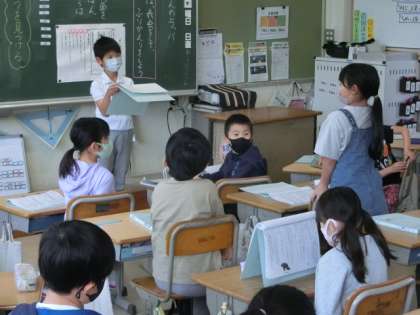 3年2組では、「すいせんのラッパ」の音読発表会を行っていました。一つ一つの言葉を大切にしながら、声の「大きさ」「はやさ」「高さ」に工夫を凝らして上手に音読していました。一人一人の発表後には、発表した子の良かった点を出し合いました。