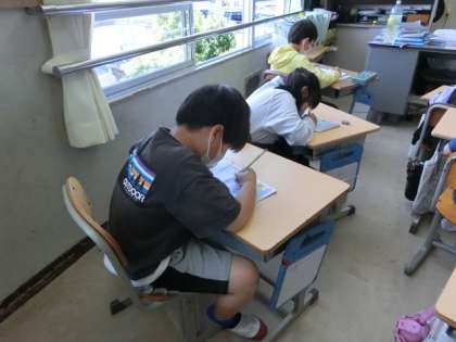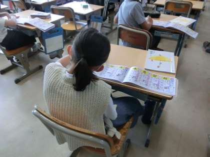 3年1組の皆さんが、漢字ドリルを使って、初めて習う漢字を丁寧に練習していました。漢字の「漢」という漢字も、ここで初めて習う漢字です。