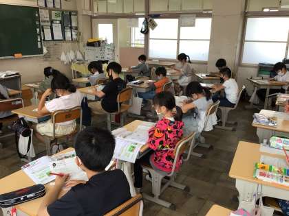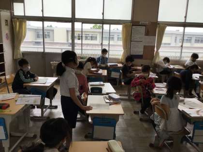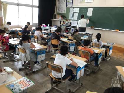 理科「天気と気温」の授業です。晴れた日や雨の日の気温の変わり方について調べたことをまとめています。