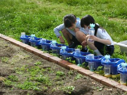 3年生の皆さんは、朝、登校すると、ホウセンカに水やりをしています。そろそろ芽が出てきそうです。