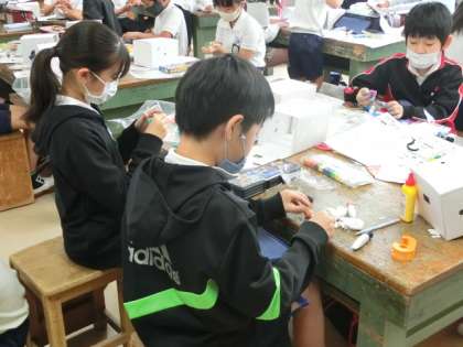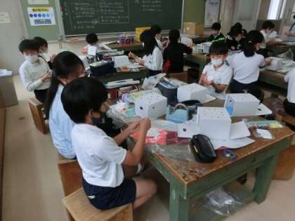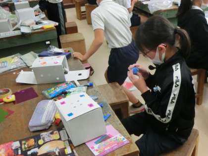 箱の中への光の差し込み方を考えながら、制作しています。真剣な表情がとても素敵です。