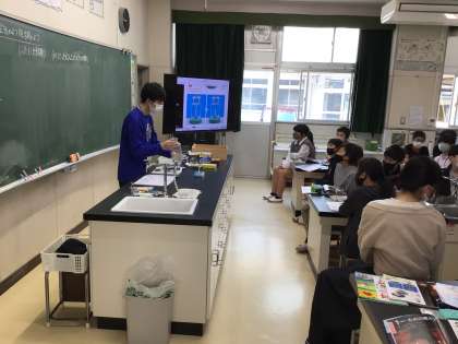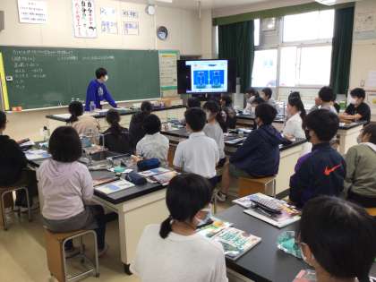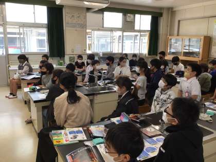 理科「ものの燃え方」の授業です。ろうそくが燃える時の空気の様子について調べています。実験の説明を聞く姿は、さすが6年生。