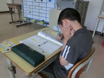 一生懸命、集中して練習しています。こうした学習の積み重ねで、文字をしっかり読んだり書けたりしていくようになるはずです。