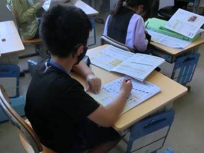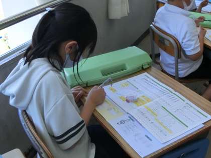 五線譜でドレミファソラシドの階名を確かめた後、3年生で初出となる「音符」「休符」について、学習していました。