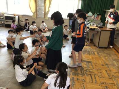 なかよし活動の様子です。6年生が各クラス様々な遊びを企画してくれました。どのクラスも楽しそうです。1年生から6年生の絆が深まりました。