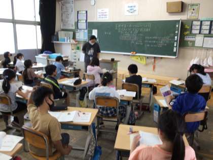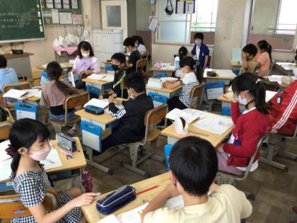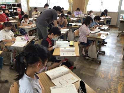 算数「わり算の筆算」の授業です。2けた÷1けたを暗算で計算するために、声に出しながら、頭の中で計算していますね。