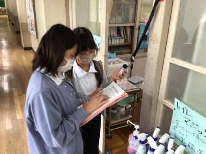 毎日、気温、湿度の計測をしたり、みんなが使うアルボースの補充をしたりしています。学校のために活動してくれてありがとうございます。
