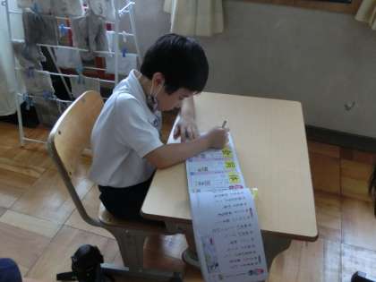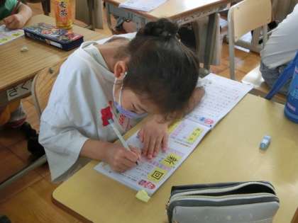 漢字ドリルを使って、新出漢字の用例を学び、正しく書く練習をしていました。