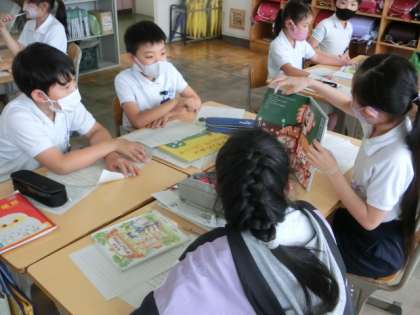 本を見せながら説明しています。相手に伝えるのですから、そうした心配りも必要ですね。