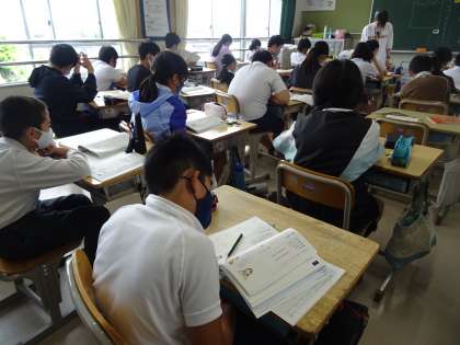ポスターのつくり方をおさえました。教科書のポスターから学んでいます。