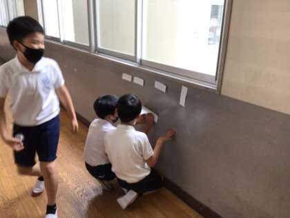子どもたちにかかれば、学校の中は全て作品ですね。いろいろな発想で作品が生まれていきます。見ていてワクワクします。
