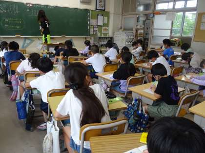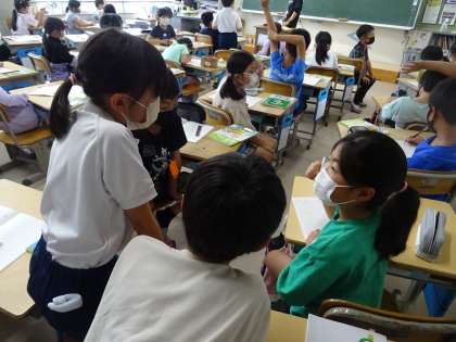 学習課題を自分たちで相談して「繰り上がりが2つある筆算の計算の仕方を考えよう」と決めました。友達と話し合いながら学習を進めています。