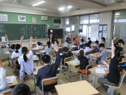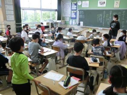 漢字は、様々な成り立ちでできています。この日は、「一」「下」などの指示文字、「休」「森」などの会意文字、「板」「晴」などの形成文字について学習しました。