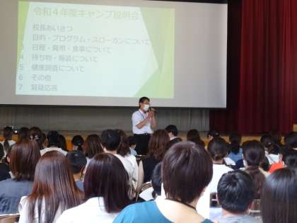 キャンプに向けて、目的や活動内容、持ち物、日程などの説明会を行いました。保護者の皆様、ご参加ありがとうございました。これから準備等、よろしくお願いいたします。