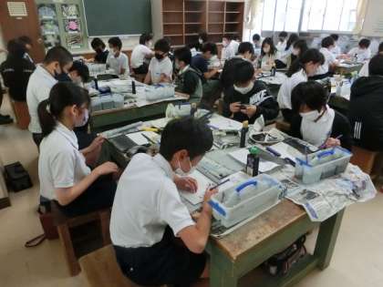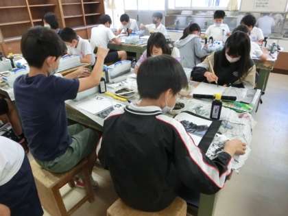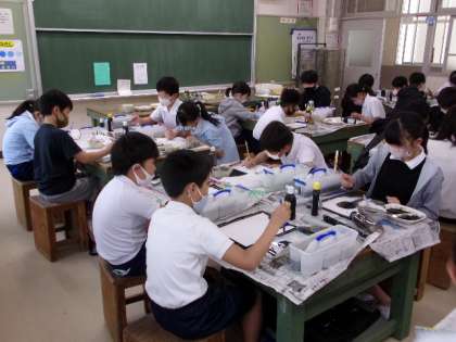 今日は、6年3組が水墨画に取り組んでいました。