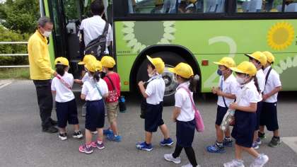 今日は、1年1組と1年2組が豊田市交通安全学習センターに出かけました。