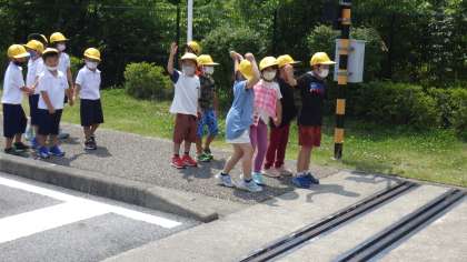 踏み切りの渡り方も勉強しました。