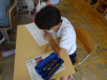 2本の直線が平行であるとき、どのような関係があるのか教科書の問題を考えていました。三角定規などを使い、確かめながら見付けていました。