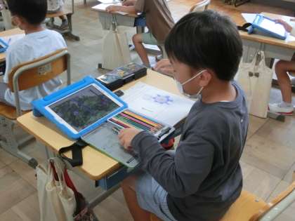 タブレットで撮影した写真をもとに、観察記録を書きました。