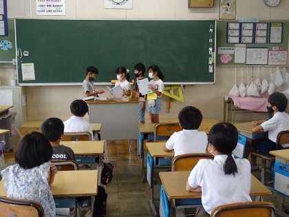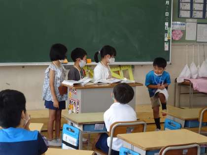 国語「名前を見てちょうだい」の音読発表を行いました。4年生に向けて発表しました。動作もつけながら、気持ちを込めて音読することができました。