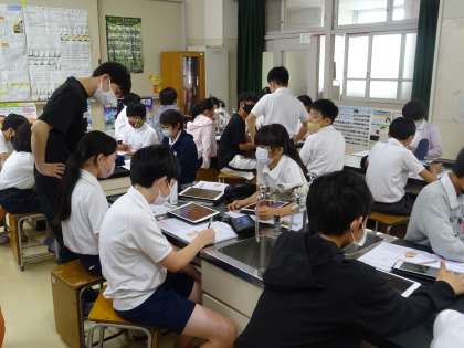 養分は、体のどこから吸収されているのか学習していました。タブレットを使い、理科ノートにまとめていました。