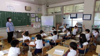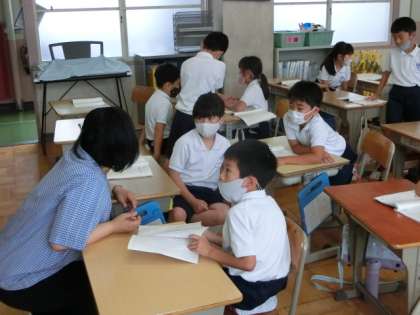 みんなで相談しながら、学習計画を立てていました。2年1組のみんなに絵の描き方を説明することになりました。