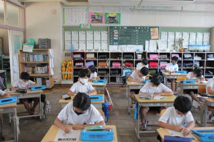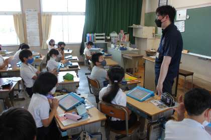 今日からQubena(キュビナ)ができるようになりました。先生から説明を受け、タブレットのデジタル教材を解きました。