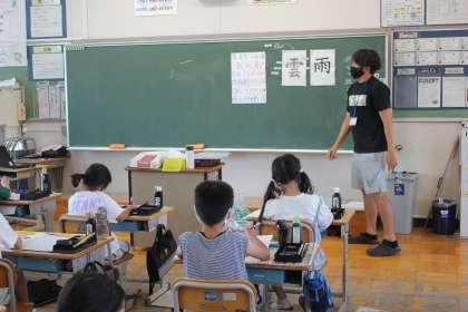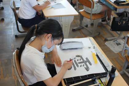 「雲」の練習をしていました。字の形がどうなっているのか、よく見て手本にポイントを記入したり、動画を運筆の様子を見たりしました。