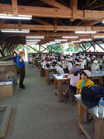 オリエンテーリングを行いました。昨日ほどではありませんが、日なたの熱中症指数が高いため、活動時間を短縮し、なおかつ、傘をさして歩くことにしました。