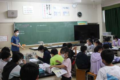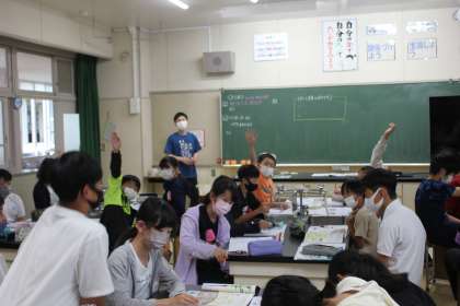 ホウセンカがどのように水を吸い上げるのか実験した結果を確認していました。理科のノートにしっかりとまとめをしていました。