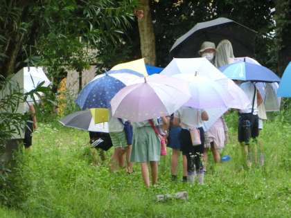 講師の先生をお招きして、ビオトープなど学校内の生き物を観察しました。