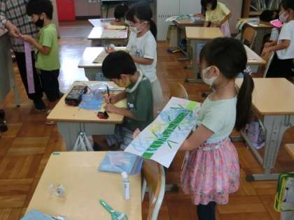 1の3図工「たなばたかざりをつくろう」