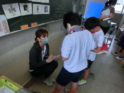 テーマに合わせて、カードを作り、それをもとに、先生やALTの先生と英語で会話しています。