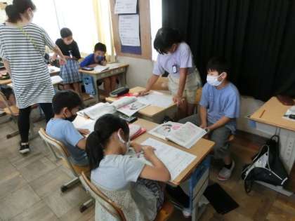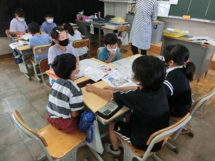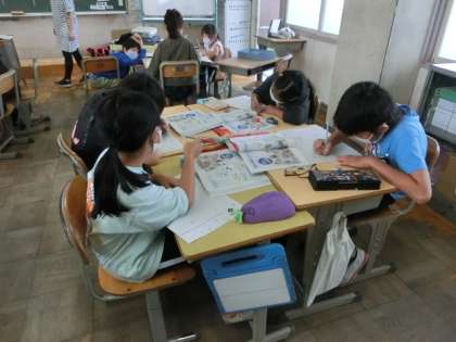2つの広告を見て、その内容を読み取ります。グループで話し合っていました。