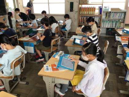授業で習った内容をタブレット学習「Qubena」で復習をしたり、算友の問題を解いたりしています。いろいろな個別学習のやり方がありますね。